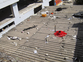 Σε άλλα σημεία εξέχουν σίδερα, παντού το πάτωμα έχει σπασμένες